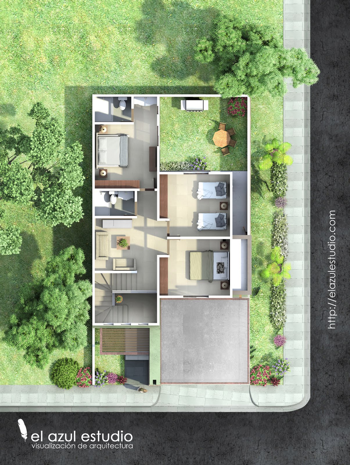 Plano de Planta Baja de Casa Moderna de 4 Dormitorios – Planos de Casas 3D